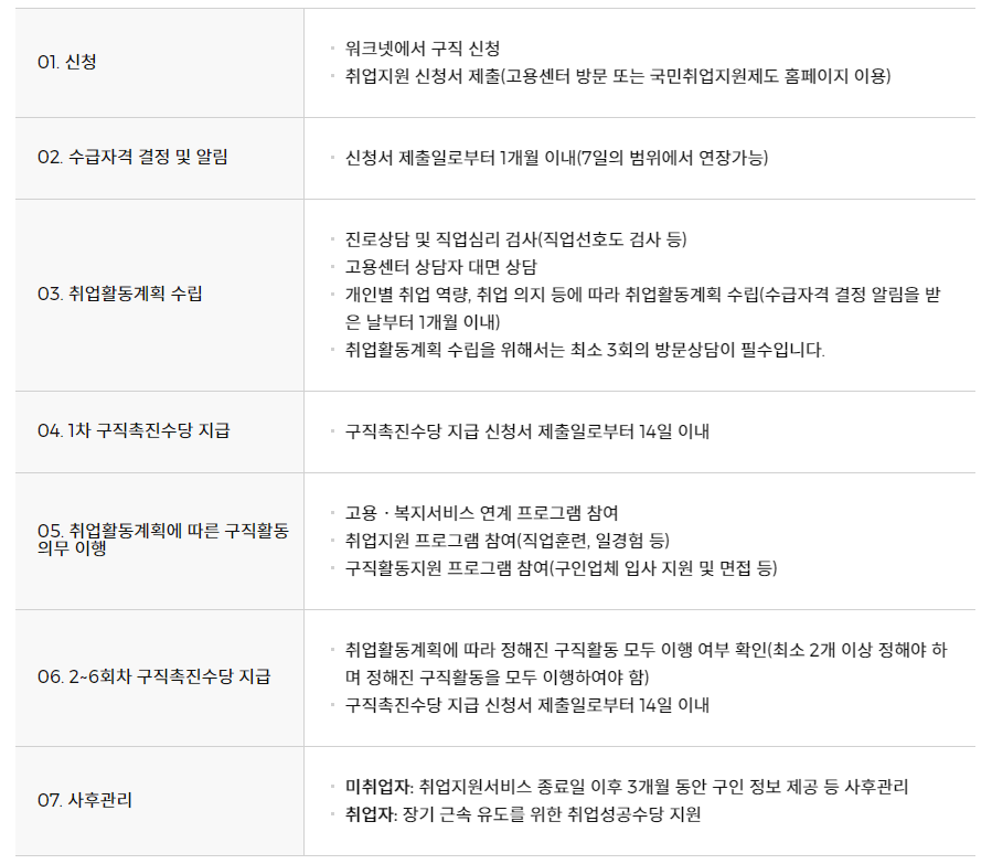 *구직촉진수당 지급주기 중 미성년자(만 18세이하), 고령자(만 70세이상), 중증장애인(장애인복지법 상 증명서 발급자) 해당자고용센터가 제공하는 취업지원서비스를 통해 구직활동을 성실히 수행한 참여자에게만 지급합니다.지급주기 중 발생한 참여자의 소득이 월 단위 지급액(월50만원~90만원)을 초과하면 구직촉진수당은 지급되지 않습니다.