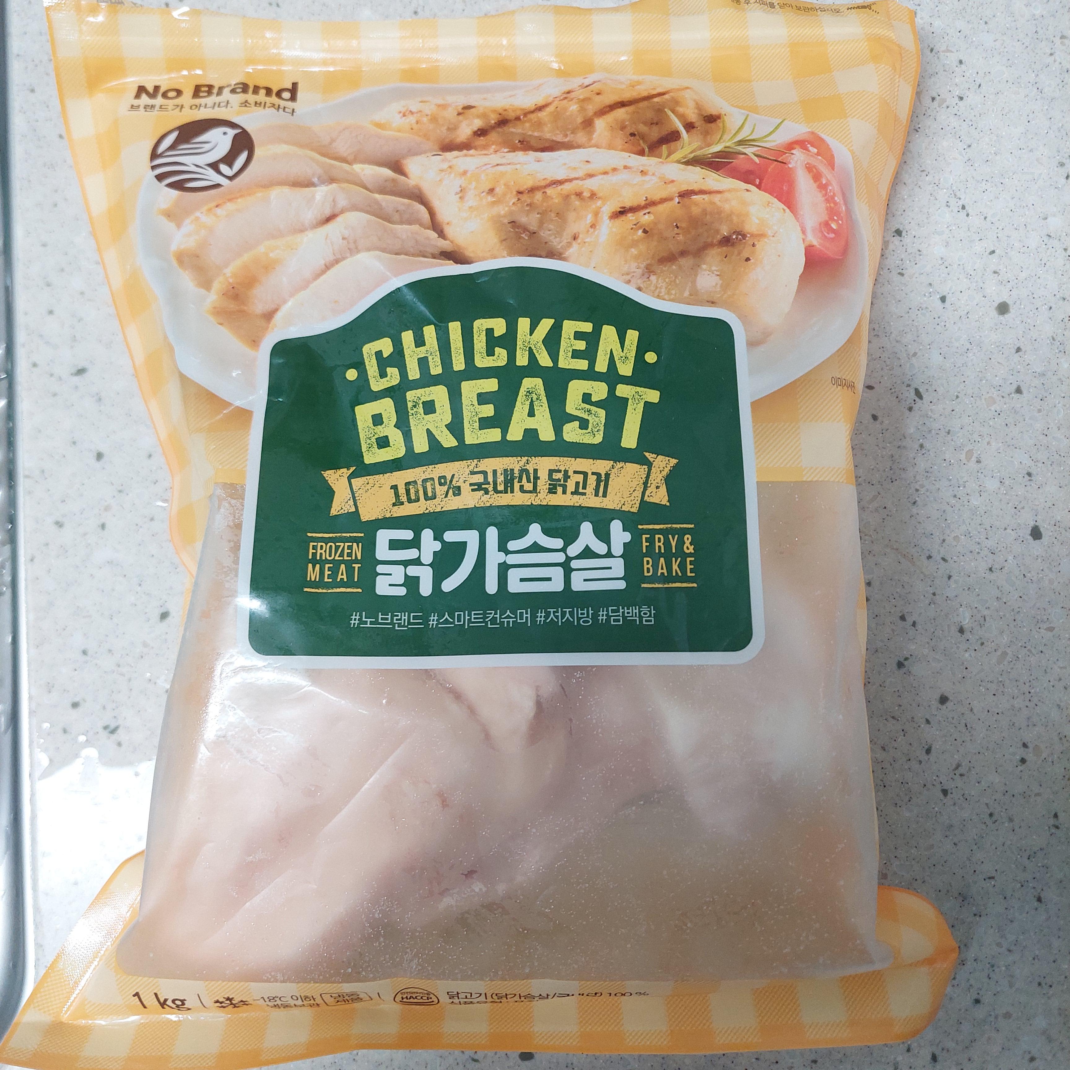 가격은 7,000원대입니다. 최근에는 노브랜드에서 조각된 닭가슴살(1kg)로 판매하고 있는데